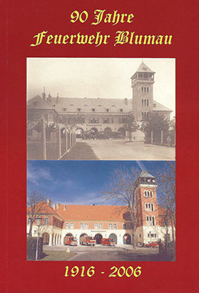 Per elektrischer Fernmeldeanlage wurde inzwischen die Berufsfeuerwehr Blumau alarmiert, welche sich sofort mit 7 Mann unter der Führung von Feuerwehrhauptmann Josef Friedrich in Bewegung setzte. In Unkenntnis der Sachlage wurden die ersten Löschversuche mit dem Hydranten durchgeführt, diese schlugen jedoch ebenfalls fehl.