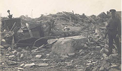 Sofort nahm die Autospritze bei einem nahegelegenen Wasserbassin Aufstellung und kaum hatte man mit den Löscharbeiten begonnen ereignete sich eine kurze, dann in weitere Folge zwei große Explosionen. Die Druckwelle erfasste die Mannschaft der BF Blumau mit voller Wucht, 3 Kameraden waren auf der Stelle tot, Kommandant Josef Friedrich wurde schwerst verletzt und verstarb kurz darauf. Die Aufbauten der Autospritze sowie des Rettungswagens wurden durch die Explosion zerfetzt, die restliche Mannschaft lag verletzt unter den Trümmern.